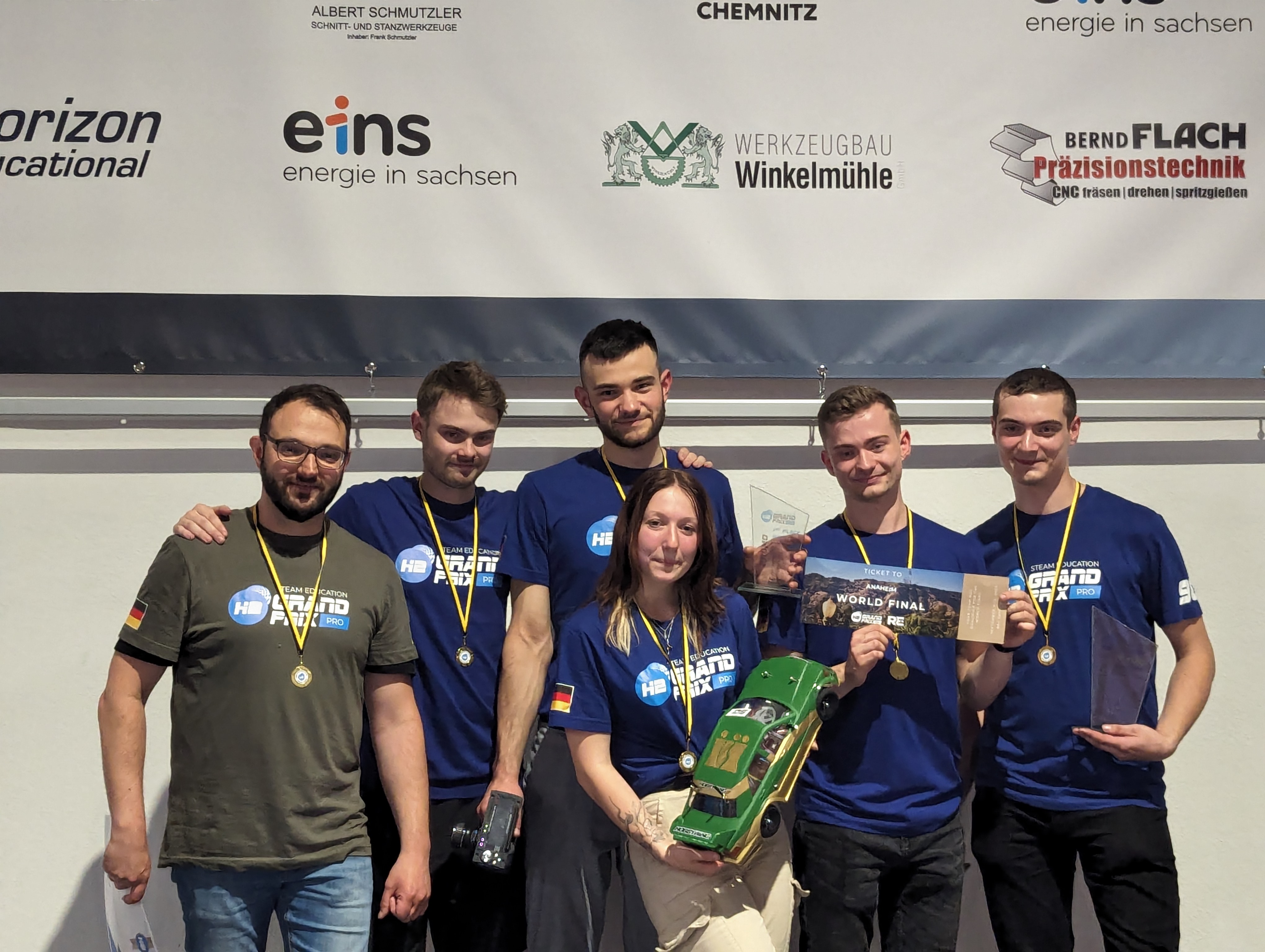 „Die Hydrogenschrauber“ - 5 Auszubildende der K21A und ihr Lehrer Daniel Rühlemann - fuhren in 680 Runden in Chemnitz ganz nach oben aufs Siegerpodest. Mit viel Spaß, noch mehr Enthusiasmus und riesigen Tüftler-Genen stellten sie sich den Deutschen Meisterschaften beim Horizon Wasserstoff Grandprix am 1.Juni 2024 im Industriemuseum Chemnitz. Nachdem die technische Abnahme der Fahrzeuge erfolgt war und einer Jury sehr erfolgreich das Auto und sein Team präsentiert wurde, ging es in das vierstündige Rennen. Elf Teams kämpften sich durch die Strecke. Boxenstopps mit Reifenwechsel, Nachtanken und schnellen Kleinreparaturen ließen eine Autorennen-Atmosphäre aufkommen, die den Puls in die Höhe trieb. Fans hinter der Boxengasse fieberten mit, die Rundenzahlen immer im Blick. Auch ein größerer technischer Defekt 15min vor Ende konnte behoben werden und der kontinuierlichen Rundenfahrt nichts anhaben. Konzentriert fokussierte sich bei allem Wettkampfgeist jeder auf seine Aufgabe. Nach dem Abpfiff wich die Anspannung der Vorfreude, die zur Siegerehrung Gewissheit wurde: Unser Team „Die Hydrogenschrauber“ gewinnt. Sie dürfen nun zum H2 Grandprix in den Niederlanden und zum World Final nach Kalifornien- was für eine grandiose Leistung. Herzlichen Glückwunsch!BSZ "Friedrich Siemens" Pirna
